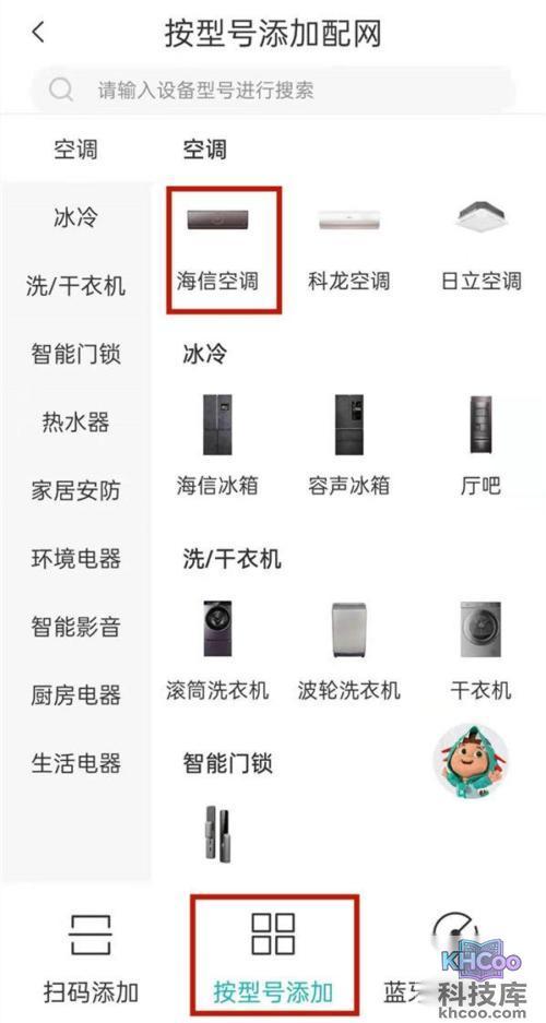 2、选择按型号添加配网后,找到空调型号。