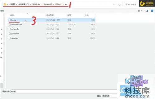 首先我们以管理员身份运行「记事本」软件,然后点击菜单栏的「文件」–「打开J,进入C:\Windows\System32\ldriversletc 这个路径,然后将右下角的「文本文档」改成「所有文件」,并打开hosts文件,如下图: