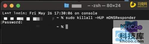 最后一步我们打开终端,输入sudo killall -HUP mDNSResponder并回车,输入密码,再回车,就可以了。