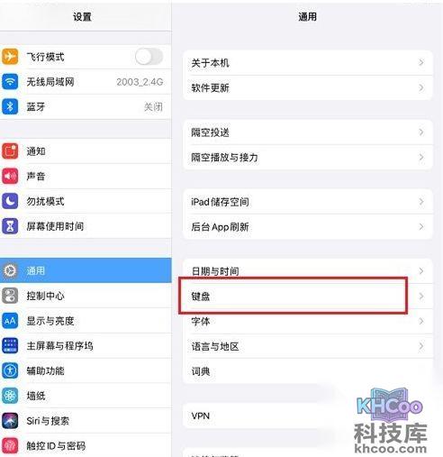1、打开设置,选择【通用】,点击【键盘】,