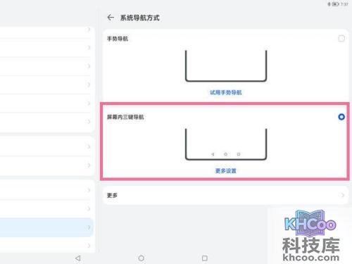 3、找到更多设置,可自主选择返回键组合方式。