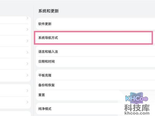 1、在平板系统和更新设置中选择【系统 导航 方式】。