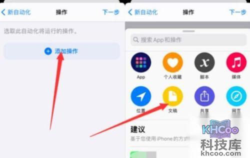 3、点击”添加操作“——选择”文稿“