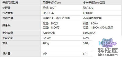 荣耀平板v7pro和小米平板5pro对比一览