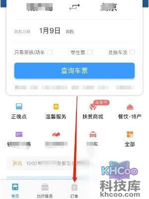 第二步:然后进入12306的首页之后,点击下面 导航 栏中的的【订单】。