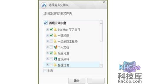 4、我们勾选上我们需要同步的文件夹就可以了,点击 【确定】 完成选择部分文件夹同步。