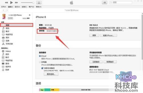 我们还可以通过连接iPhone到电脑并打开iTunes, 点击 【设备图标】>【摘要】,即可在在右侧找到序列号。