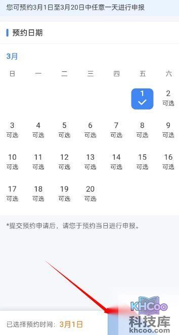 3、选择预约日期,点击提交预约申请。