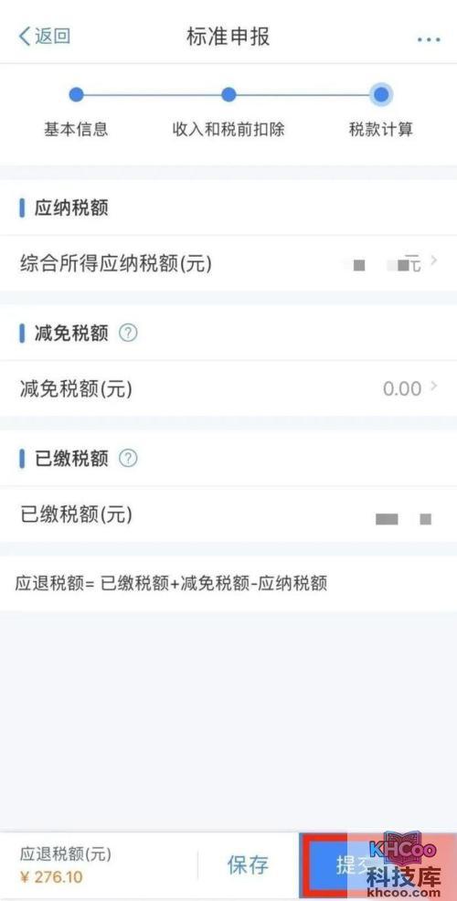 6、数据系统将自动计算您本年度综合所得应补/退税额,点击提交申报。