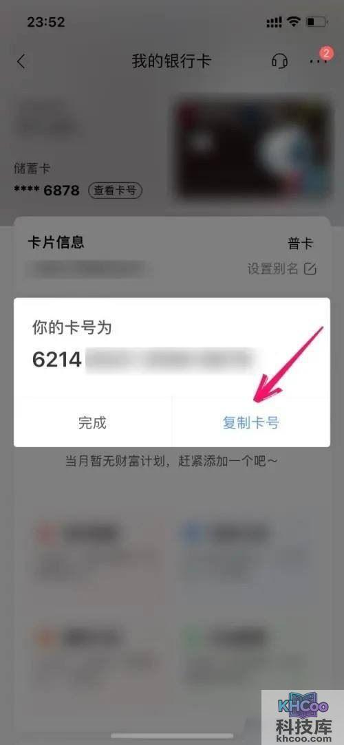 在弹出来的页面里查看完整卡号。