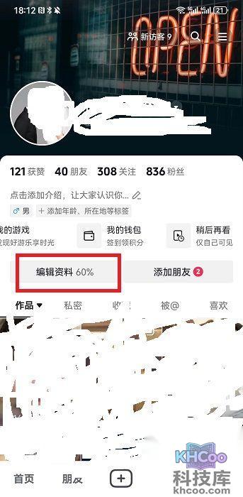 2、然后在个人主页中可以看到会有一个【编辑资料】的按钮,点击即可进入到编辑信息资料页面;