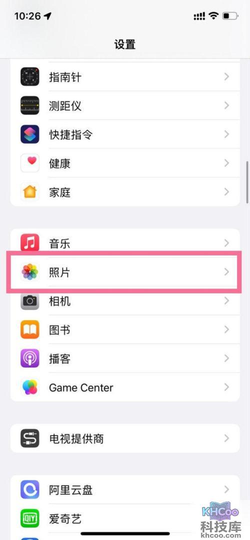 1、在手机设置中点击顶部的【照片】。
