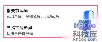 3、还可以在设置里设置 指关节截屏 和 三指下滑截屏 。