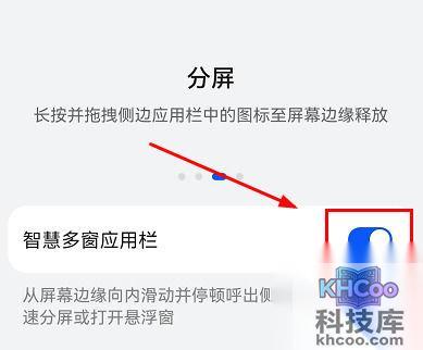 4、将“ 智慧多窗应用栏 ”的开关打开。