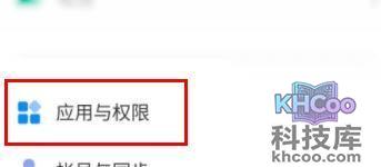 2、然后点击“ 应用与权限 ”。