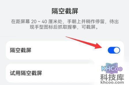 5、最后将该功能打开,就可以使用mate50的隔空操作了。