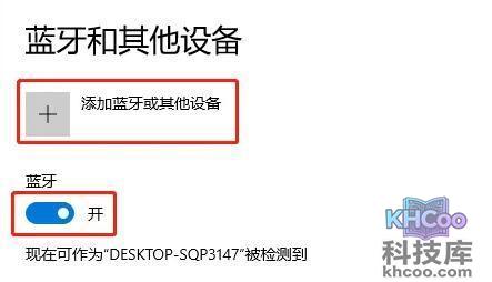 5、接着打开其中的“ 蓝牙 ”并点击“ 添加蓝牙或其他设备 ”