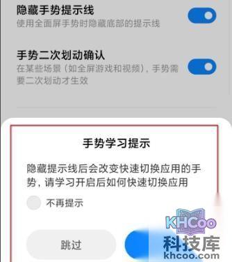 3、将“ 隐藏手势提示线 ”后面的开关打开。