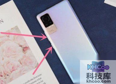 2、同时按下手机的 音量键以及关机键 。