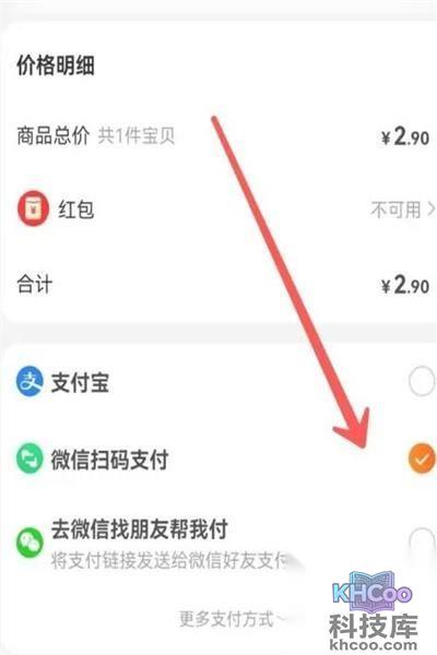 3、我们进入到结算页面之后,就可以看到下面的支付方式当中有着微信扫码支付。