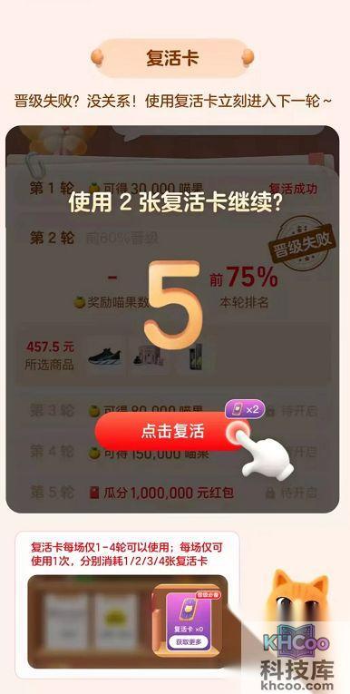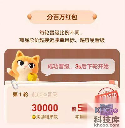 ·越是接近凑单目标,就越能成功晋级,获得红包或者喵喵奖励。
