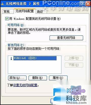 然后点‘添加(A)’,填写入‘WGR614v6’(区分大小写),再按‘确定’,XP系统回到网络搜索界面: