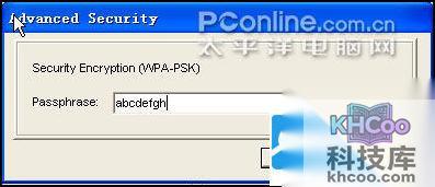 在选择WPA-PSK(Wi-Fi Protected Access Pre-Shared Key),然后在Passphrase输入密钥,此例输入:abcdefgh,最小8位,最大63位。
