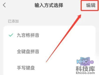 2、进入输入方式设置界面,点击右上角“编辑”选项。