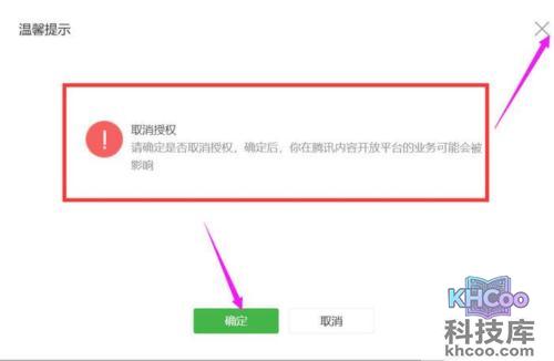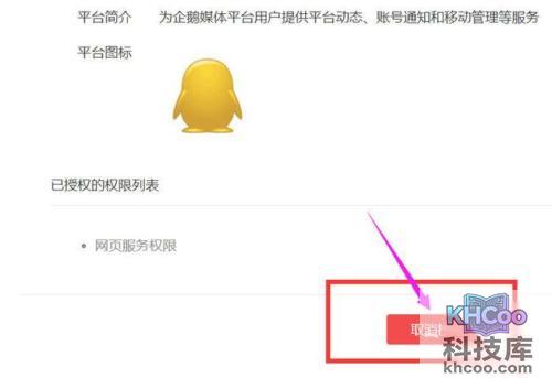 7、再把鼠标往下移,看到红色的醒目的“取消授权”,点击一下。