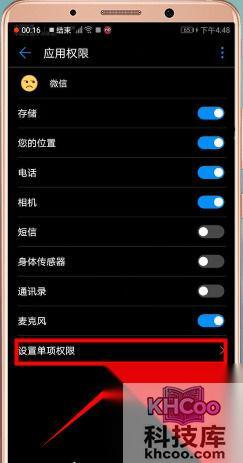 接着找到并点击【微信】,点击【设置单项权限】