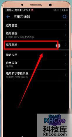 然后点击【应用和通知】-【权限管理】