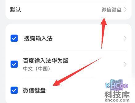 4、在其中将微信输入法设置为默认输入法。