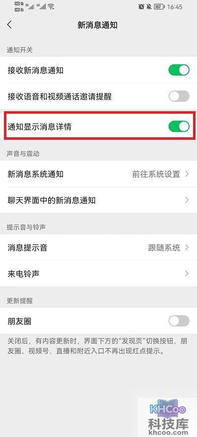 3、在此功能界面中,点击关闭【通知显示消息详情】功能,就可以让消息不显示在屏幕上。