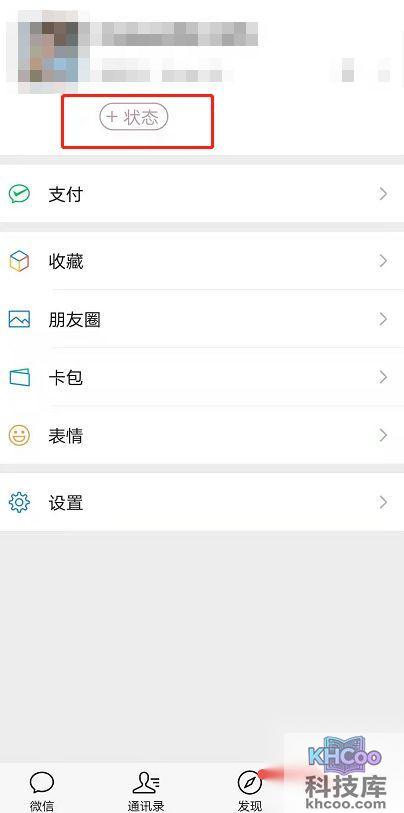 打开微信APP,点击我的页面中头像下方的状态开始设置。