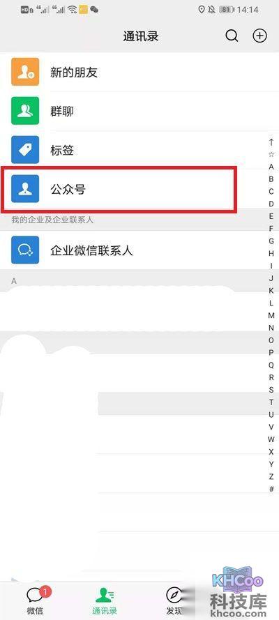 2、 通讯 率界面中我们需要再次点击【公众号】;