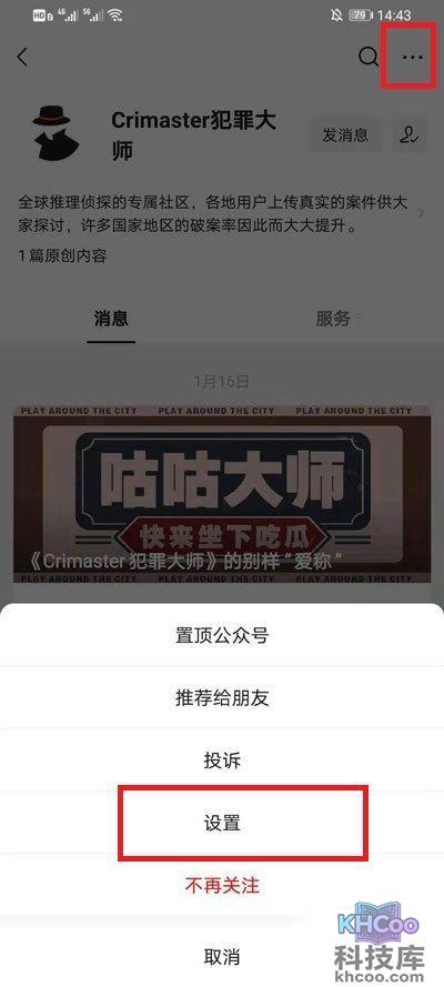 5、在公众号的主页介绍界面中点击右上角的【...】在弹出的选项中点击【设置】