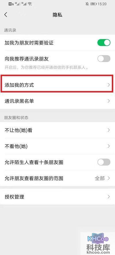 4、在【隐私】界面中我们需要点击【添加我的方式】进入到界面中;