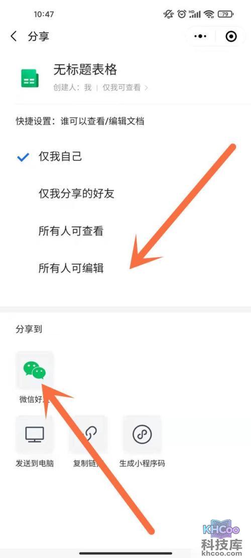 2、在表格中点击转发的图标,勾选“所有人可编辑”,再分享到微信即可。