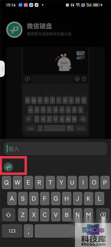 2.点击过后会在页面下方拉出来一个键盘,点击【微信键盘】图标;