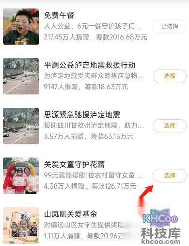 6、选择您需要捐赠的公益项目即可。