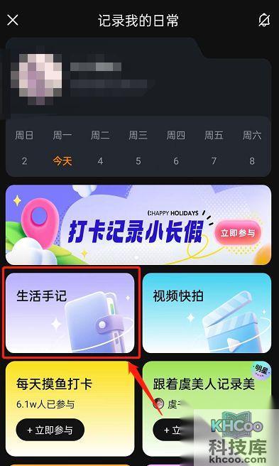 2、点击 生活 手记。