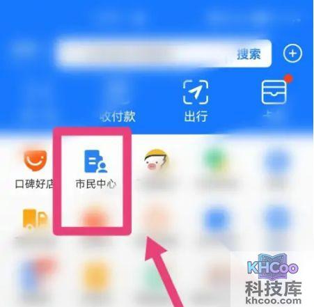 在支付宝首页点击进入市民中心。