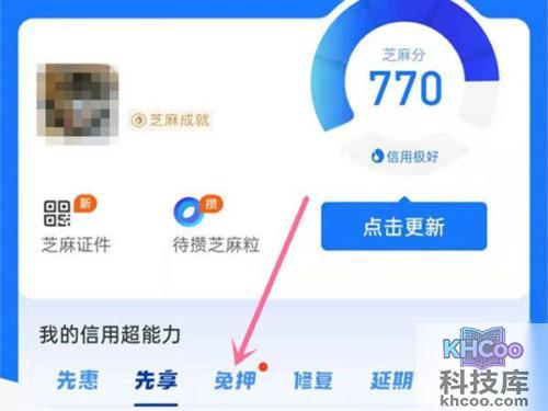 2、在芝麻信用页面,点击免押。