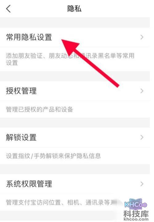 3、进入隐私界面之后,点击“常用隐私设置”