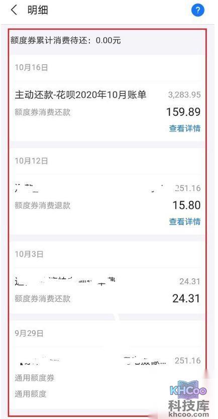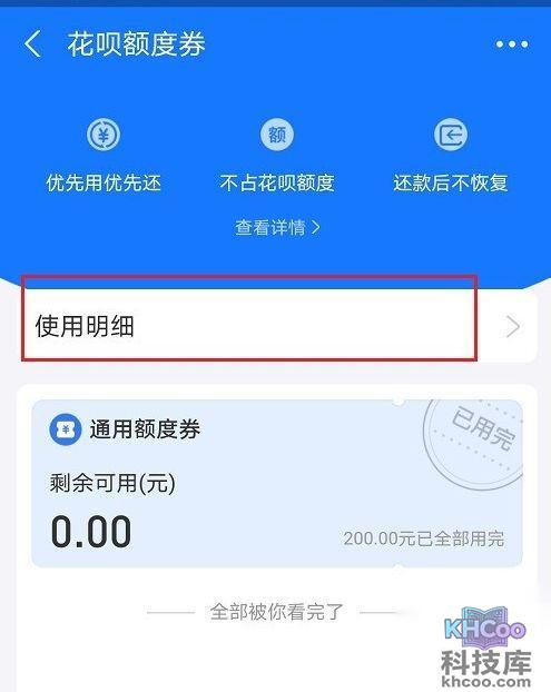 5、第五步进去之后,可以看到花呗额度劵使用明细,根据需要查看