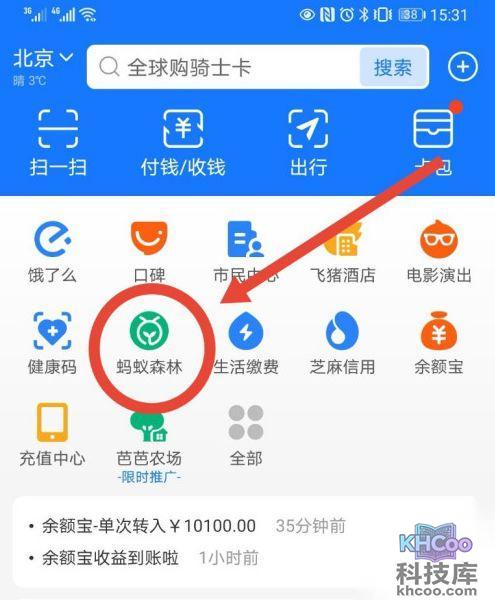 2、选择首页上的蚂蚁森林,进入。