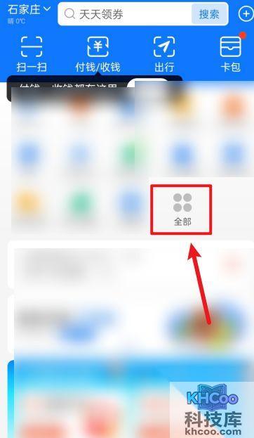 1、打开支付宝,点击全部。