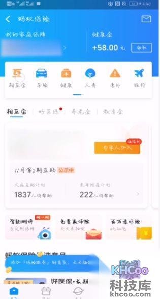 2找到并点击“蚂蚁保险”,点击“相互宝”。