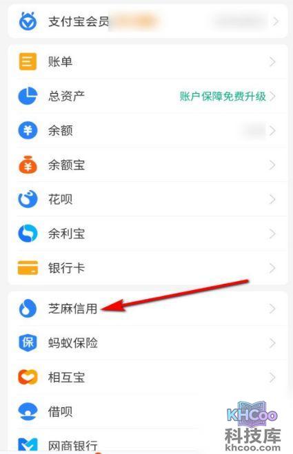 3、 点击“芝麻信用”。