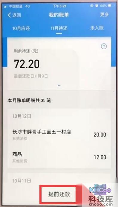 3、若本月的已经还清,那我们可以点击下月的,然后点击屏幕下方的【提前还款】,